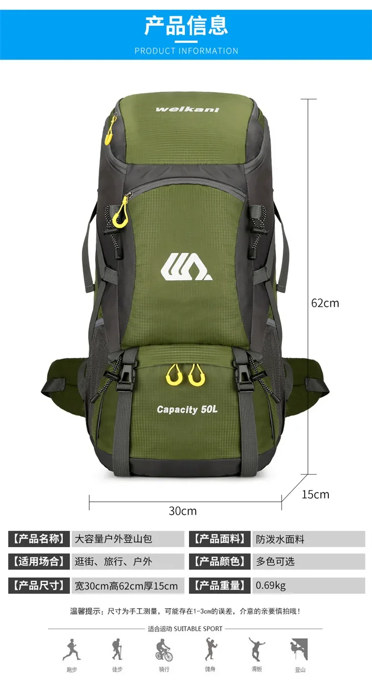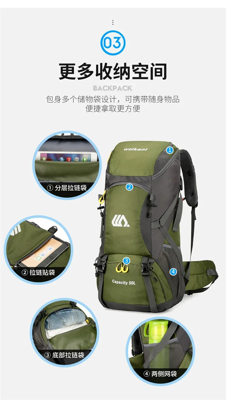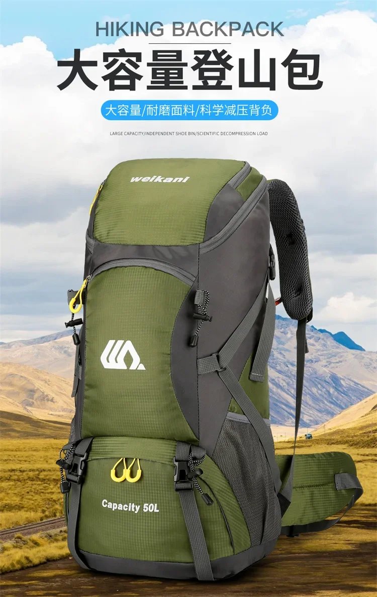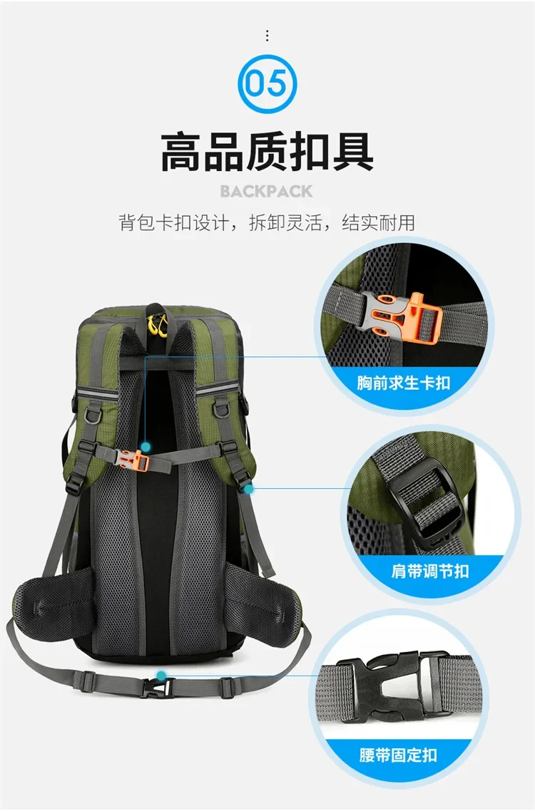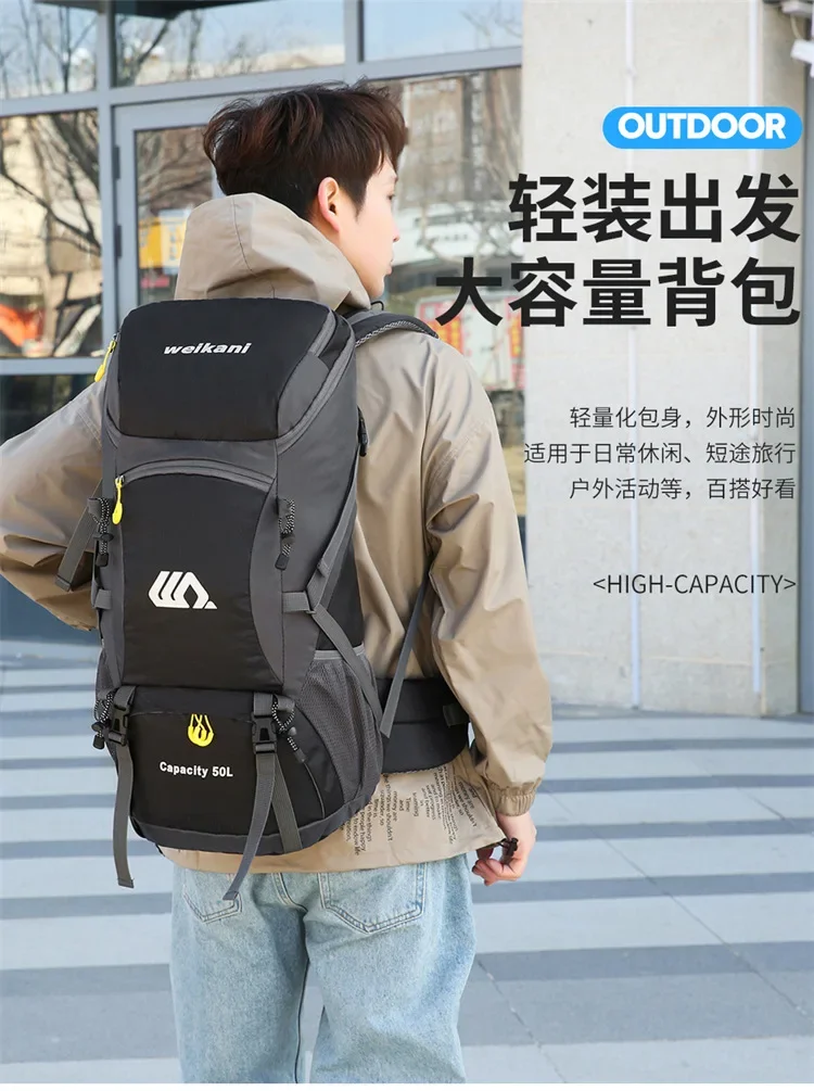 50L Travel Backpack Camping Men Large Hiking Bag Tourist Rucksack Waterproof Outdoor Sports Climbing Mountaineering Bag Luggage