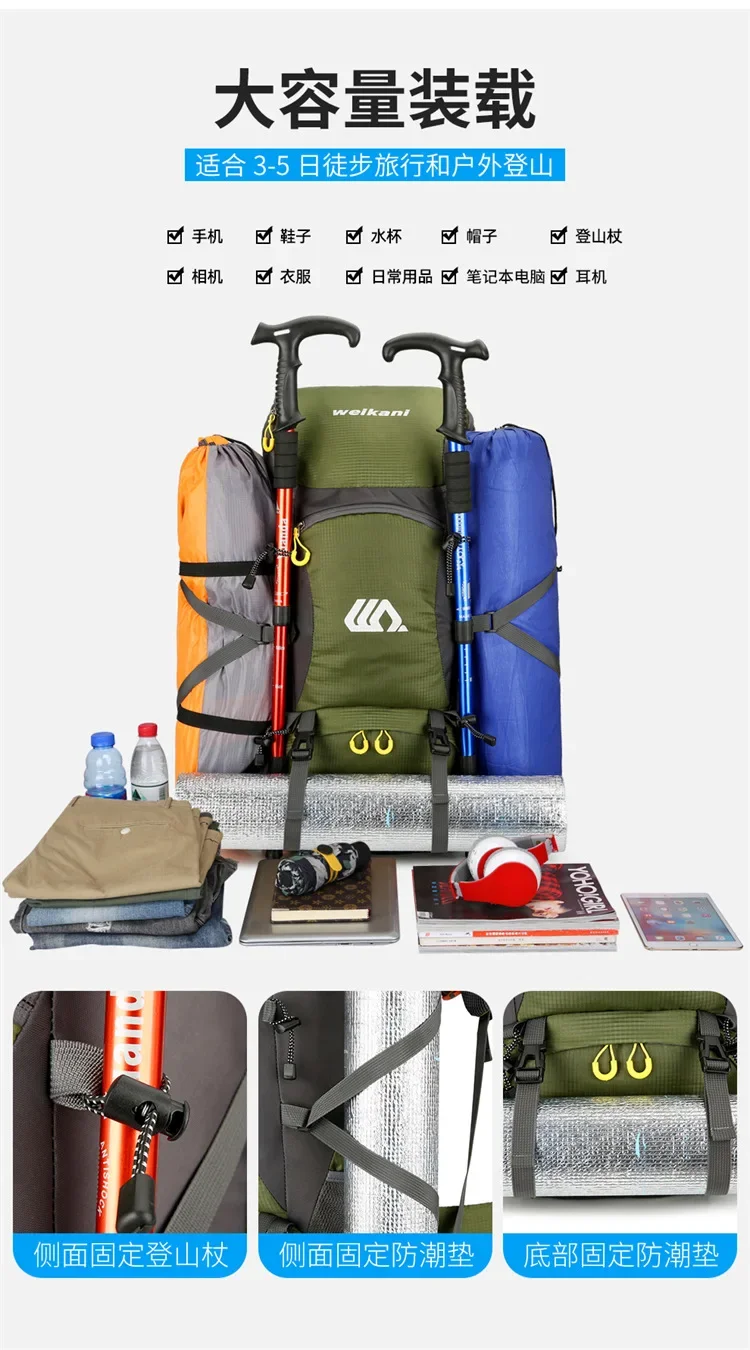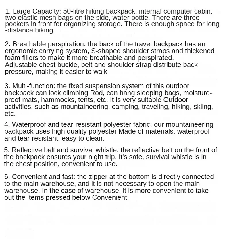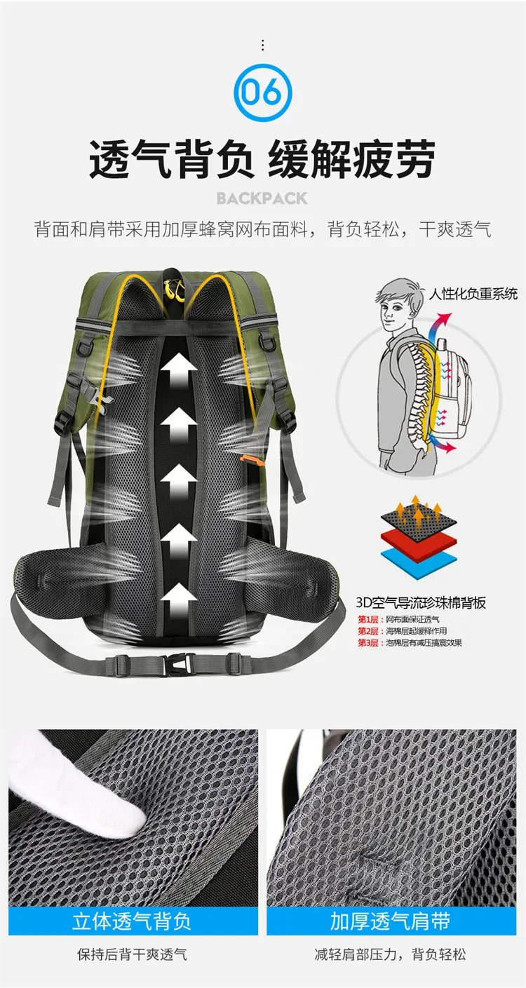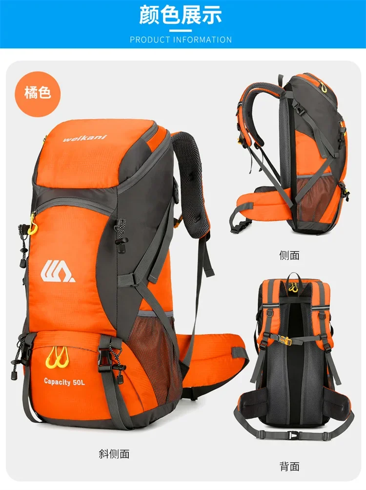 50L Travel Backpack Camping Men Large Hiking Bag Tourist Rucksack Waterproof Outdoor Sports Climbing Mountaineering Bag Luggage