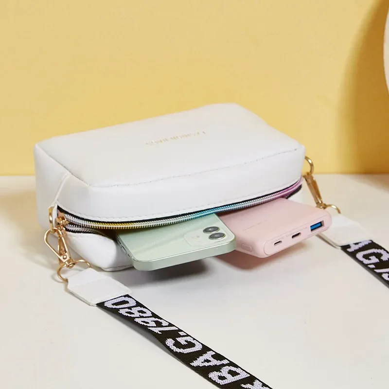 Simple Style Small Shoulder Bags for Women Solid Color Pu Leather Wide Strap Crossbody Bag Female Phone Purse Messenger Handbag